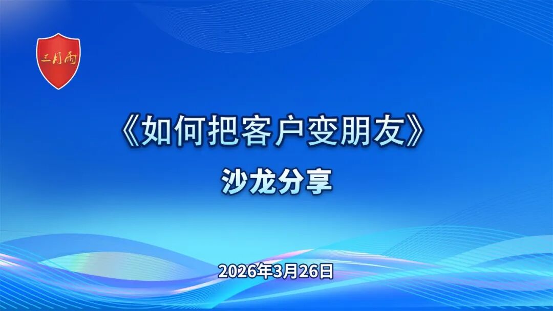 3月26日,“如何把客户变朋友”系列专题分享沙龙在三月雨211会议室圆满落幕。本次系列活动历时一月,共举办四期,旨在通过经验共享与互学互鉴,全面提升全员客户服务意识与实操能力。2026-03-27