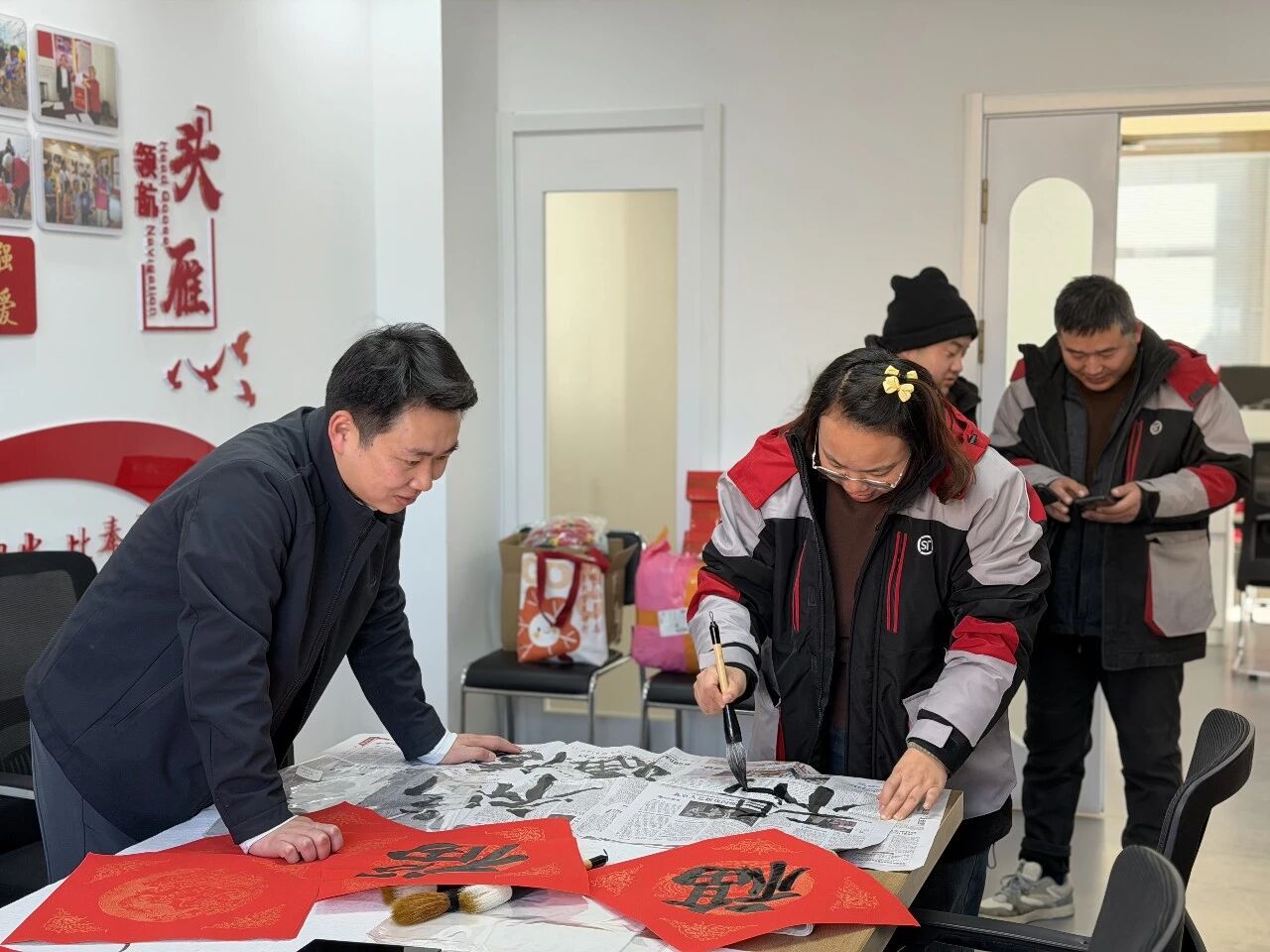 腊梅吐蕊,墨香传情。三月雨“翰墨同心会”第十期主题活动以“马上送福”为核心,专程前往北宫镇暖心驿站,将饱含新春期许的文化祝福精准送达基层群众与外卖小哥等户外劳动者手中,以文化关怀传递城市暖意。