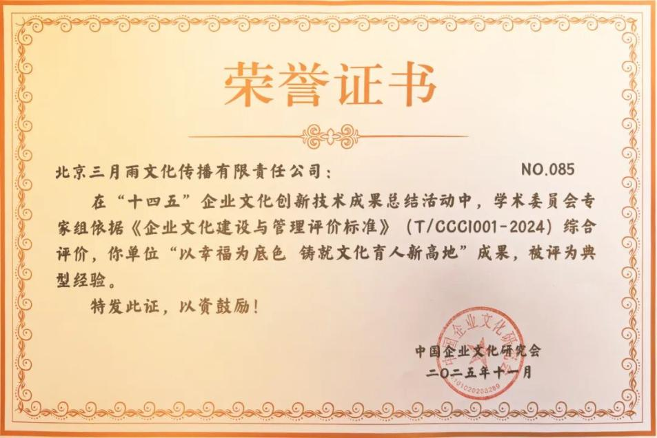 8.三月雨"以幸福为底色 铸就文化育人新高地"成果,被评为企业文化建设与管理典型经验