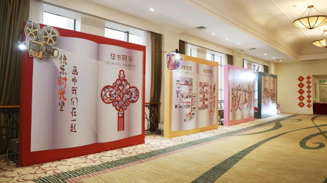 第二展区“快乐时光里,画中我们在一起”,展现了团队日常工作的场景与集体欢聚的温暖时刻,以及日日夜夜并肩前行的生动画卷。