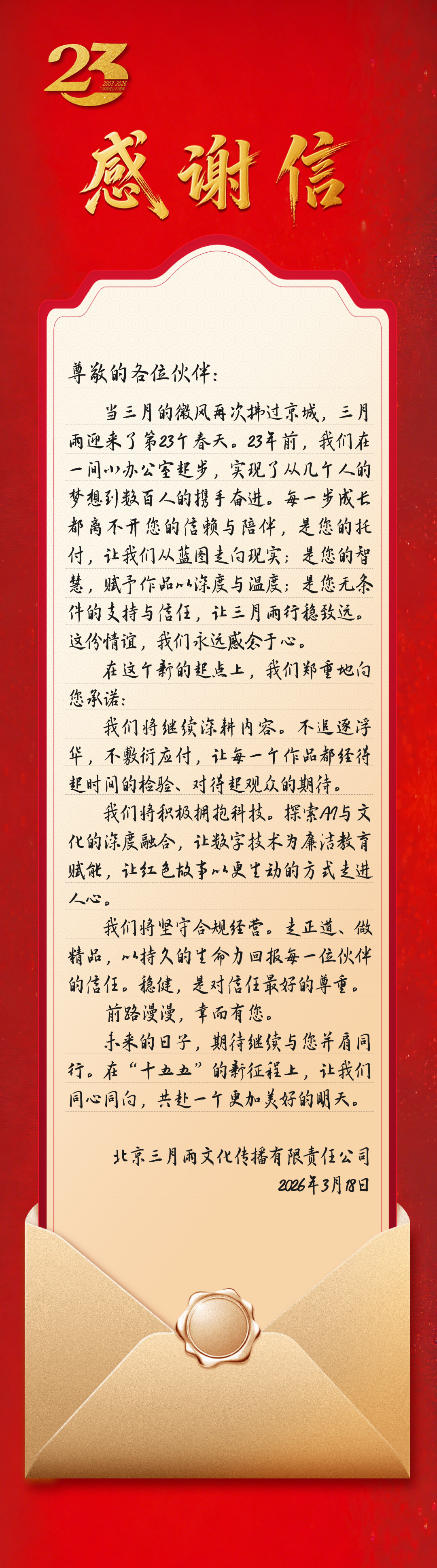 廿三载同行,同心致远——北京三月雨致各界伙伴的感谢信