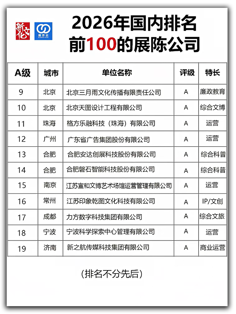 三月雨榜上有名|2026年国内排名前100展陈设计公司公布